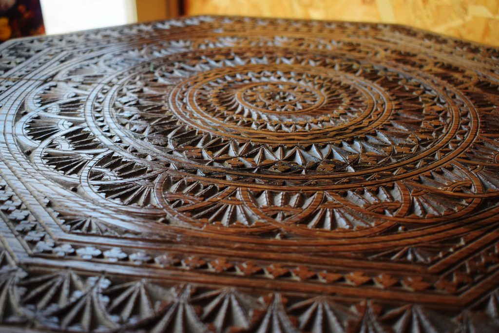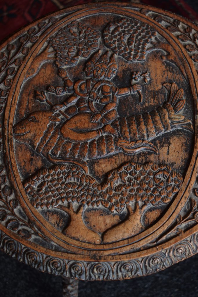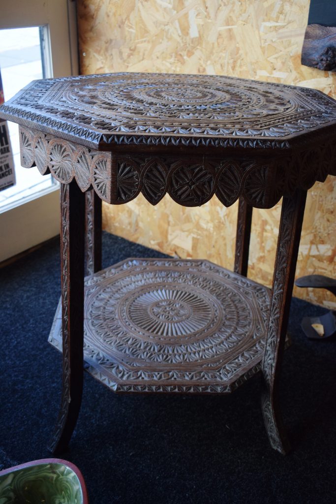 Beautiful indian table, made from oak. Hand carved with stunning detail. Size: H64cm W64cm D64cm