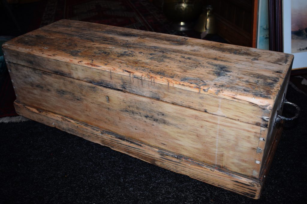 Made from pine wood, this box has beatiful distressed look, has been waxed to enhance the grain. Would be perfect for keeping shoes or using as an ottoman. Size: H28cm W109cm D30cm