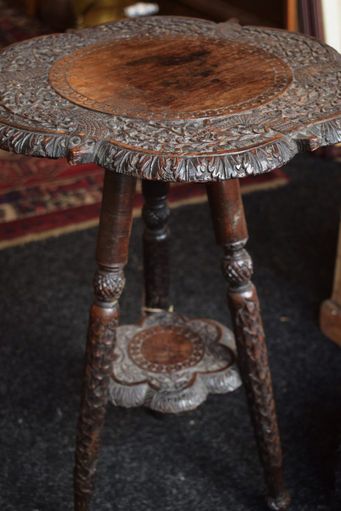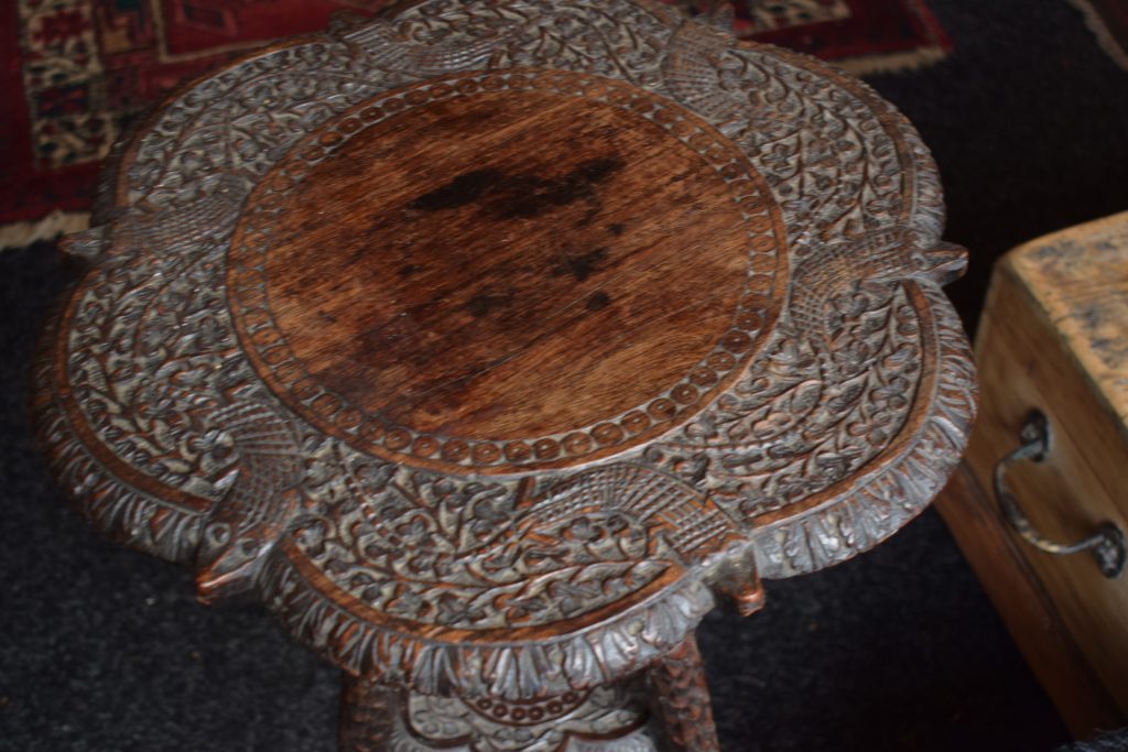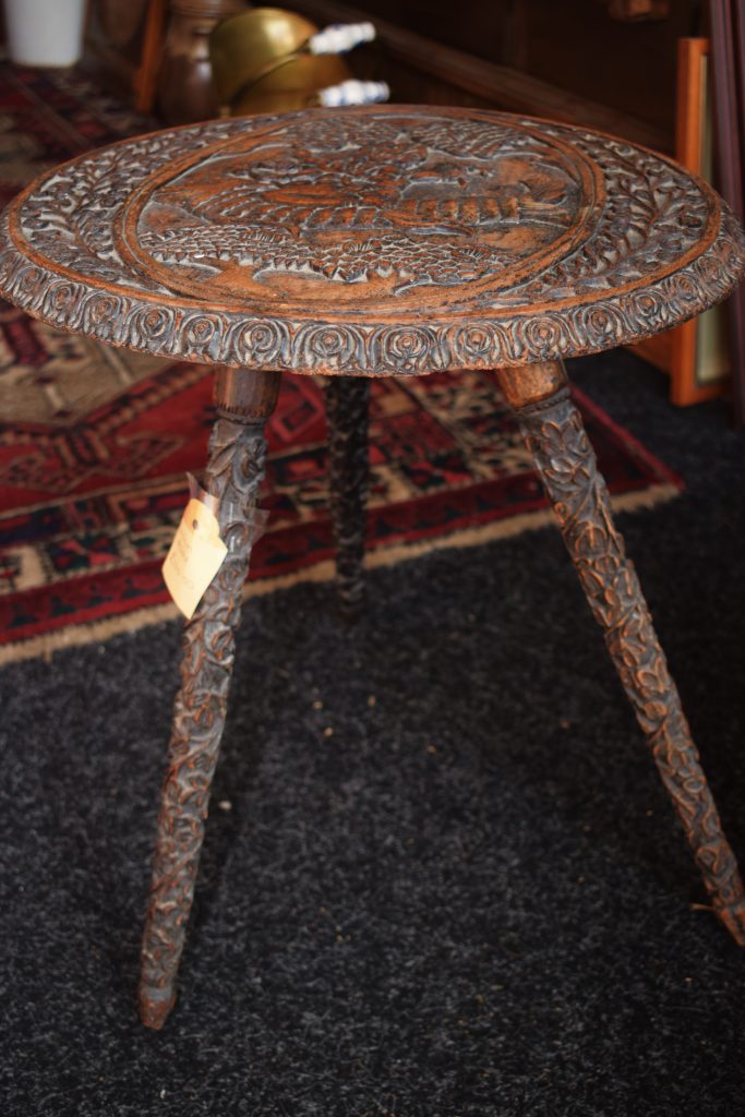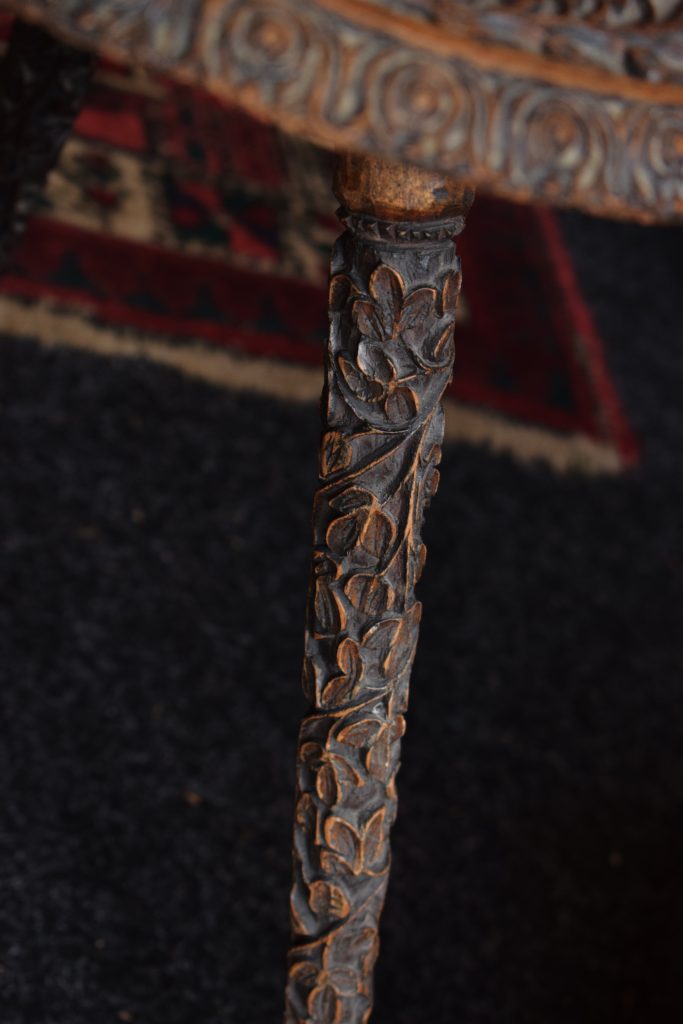 Beautiful indian table, made from oak. Hand carved with stunning detail. Size: H56cm W40cm D40cm