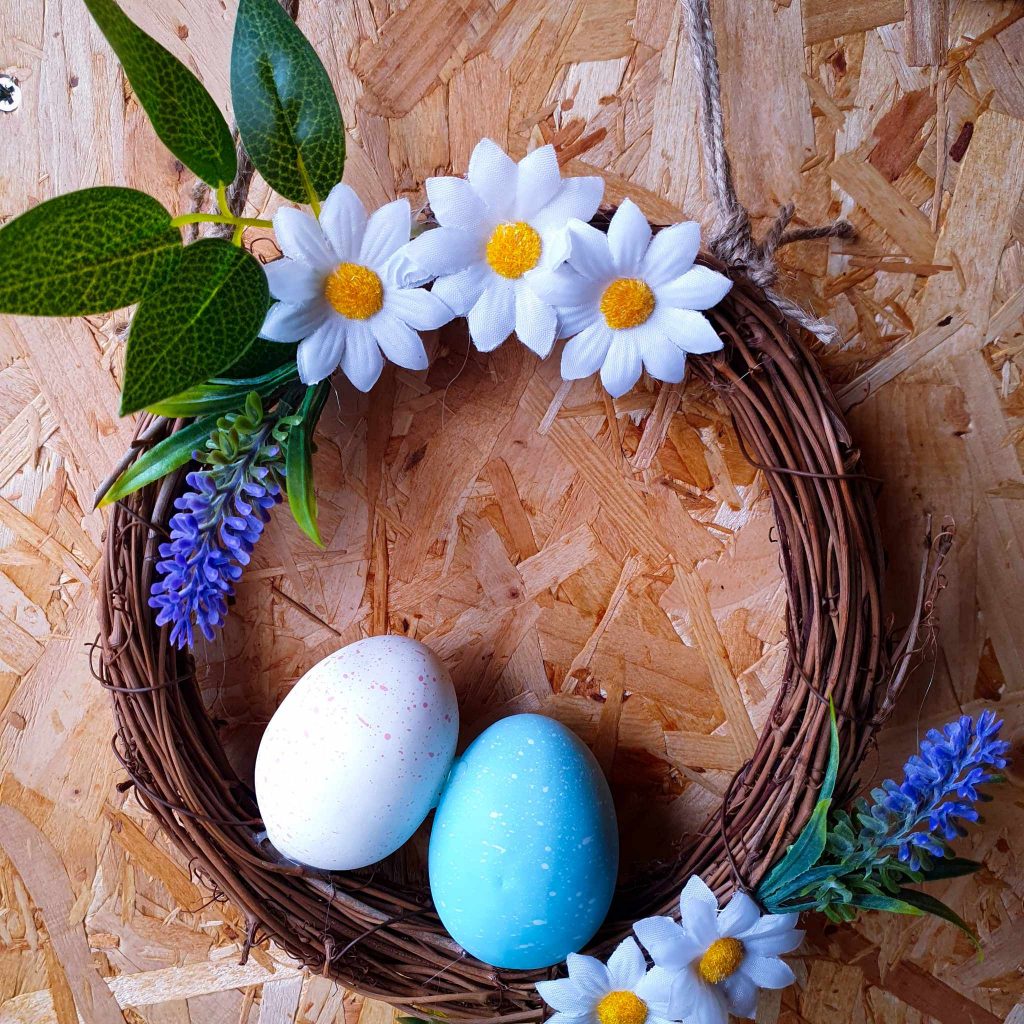Easter wreath with eggs and flowers